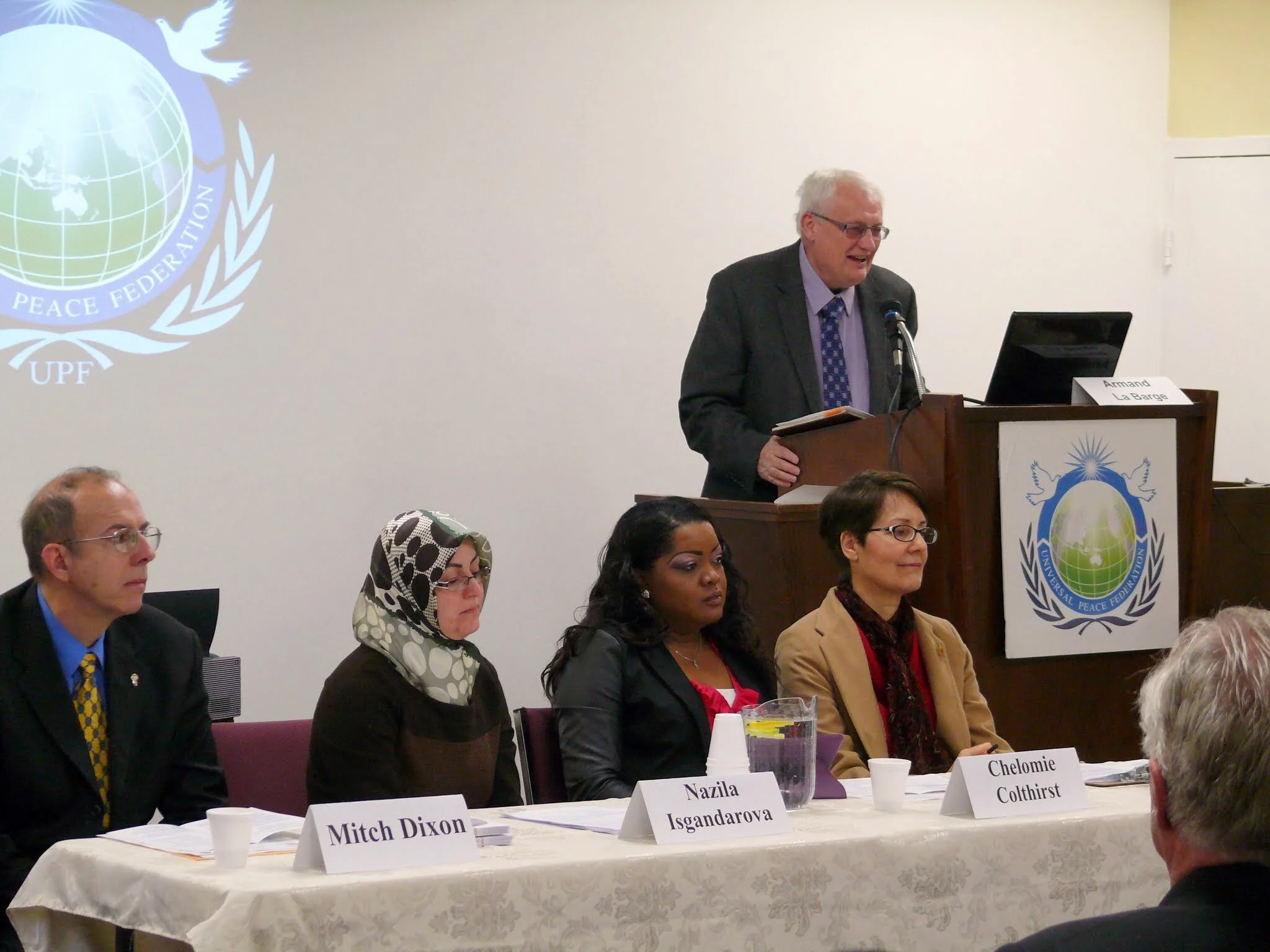 A WFWP/UPF conference, part of the on-going ‘Educating for Peace’ series on, was held in Toronto on January 11, 2014 on the specific theme, ‘Stable Families Bring Prosperity, Peace and Integrity to the Nation’. It was compromised of 3 panels, with time for questions and answers and was very ably guided by Dr. Armand LaBarge, retired Police Chief of Peel. Rev. Earl Smith of the Church of Scientology offered the Invocation and Dr. Moon Shik Kim, the Canada UPF Chairman, welcoming remarks…